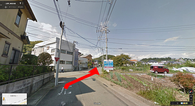 Turn RIGHT at the sign of Kawawa Shrine Entrance (川勾神社)